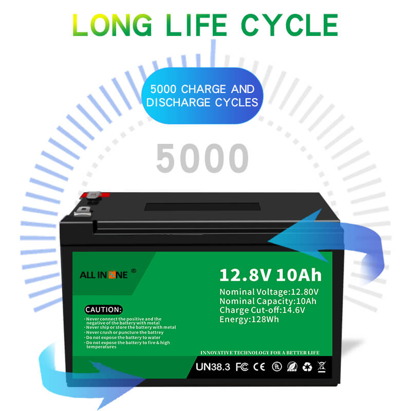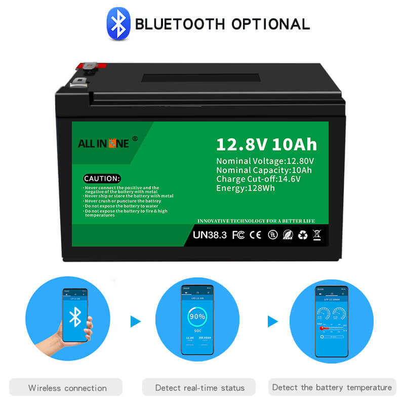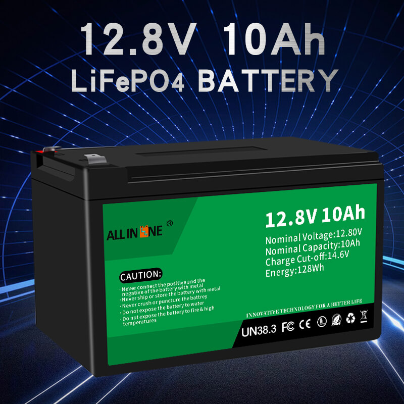 This 12.8V 10Ah LFP battery can be perfect substitution to AGM/GEL battery, ALLIN ONE also provides customized batteries with different capacity, dimension and functions according to customer's specific requirements.