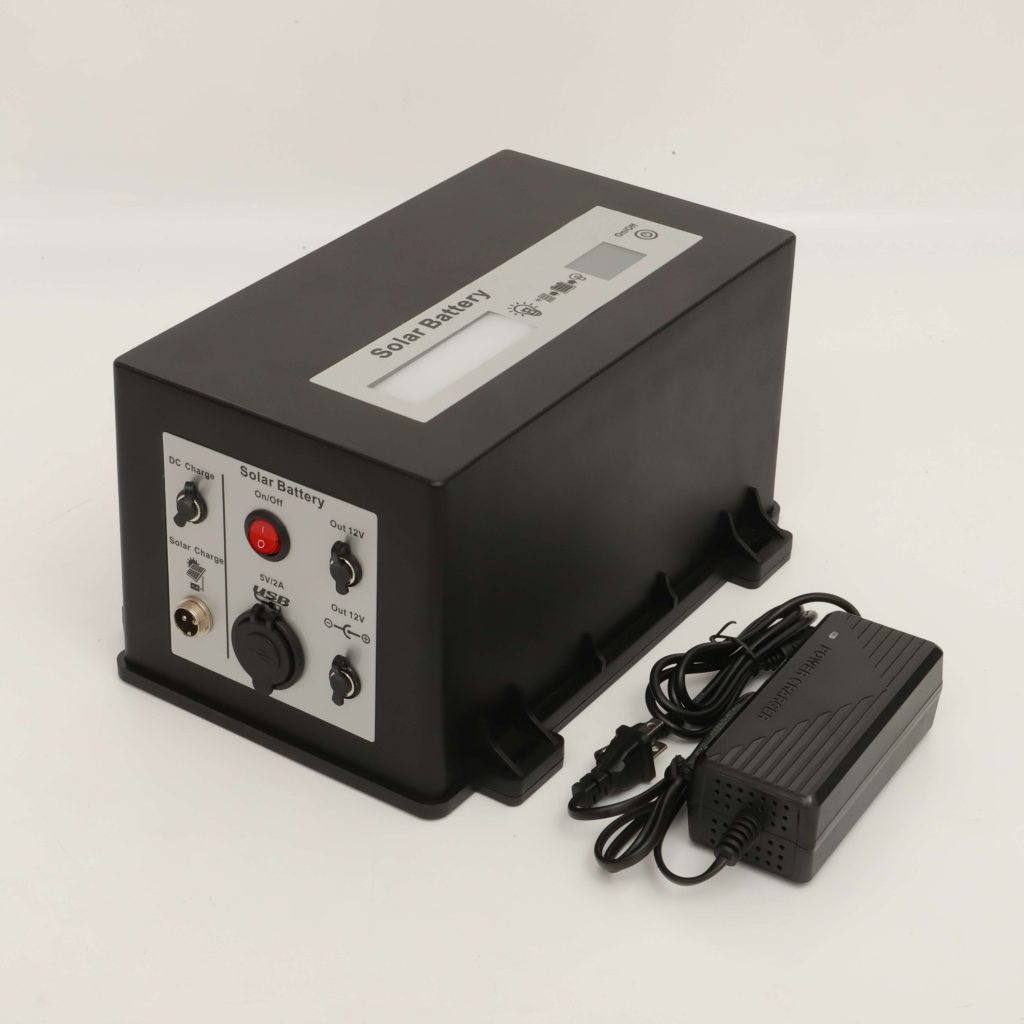 - This solar battery pack useslithium iron phosphate batteriesconnected in 4 series which can support a continuous 10A charging and discharging. Please pay attention to the voltage and current of the electrical equipment, and do not overload it;