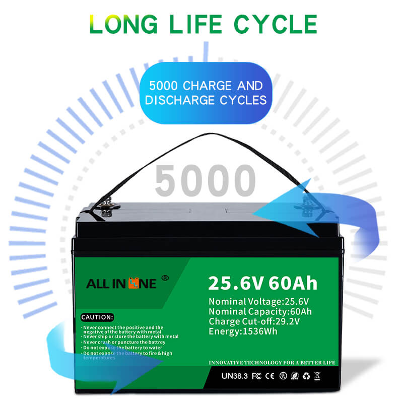 This 25.6V 60Ah LFP battery can be perfect substitution to AGM/GEL battery, ALL IN ONE also provides customized batteries with different capacity, dimension and functions according to customer's specific requirements. Comparing with AGM/GEL lead acid batteries, ALL IN ONE Li-ion (LiFePO4) substitution solutions has the following advantages:
