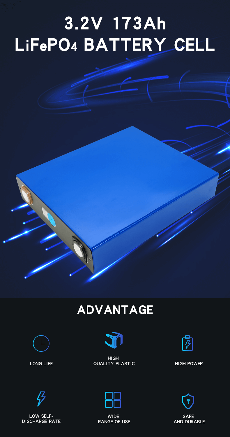 This UL certified 3.2V 173Ah LiFePO4 battery cell has the following advantages: