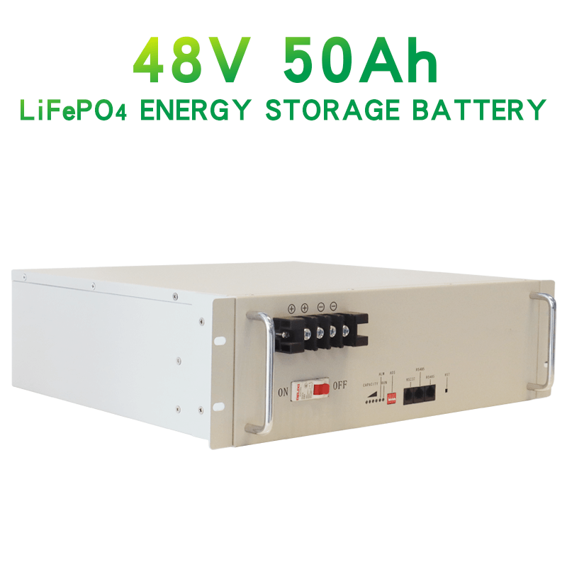 This 48V 50Ah LFP battery system has built-in BMS and stainless steel box painted in black or white.
