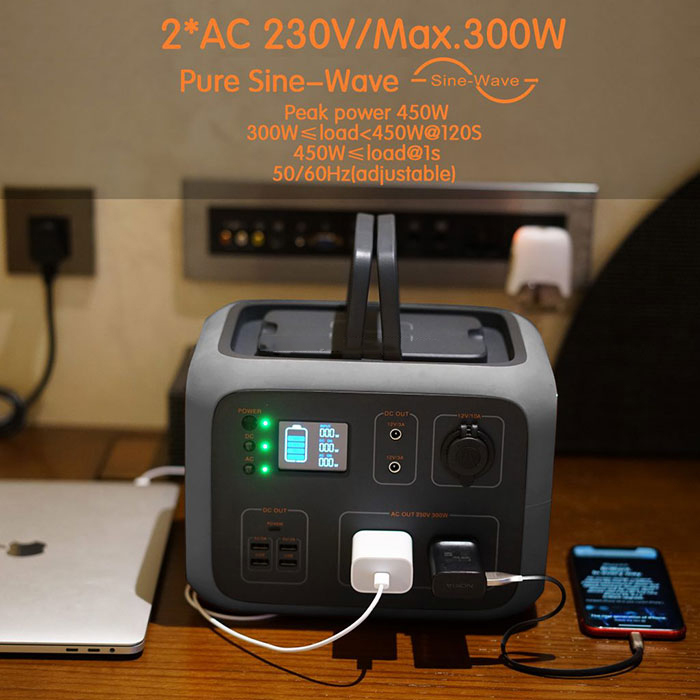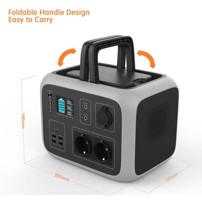 500Wh Portable Generator Power Station Power Supply with Quite 300W DC/AC Inverter, DC/AC/USB outputs for Outdoor Camping Travel