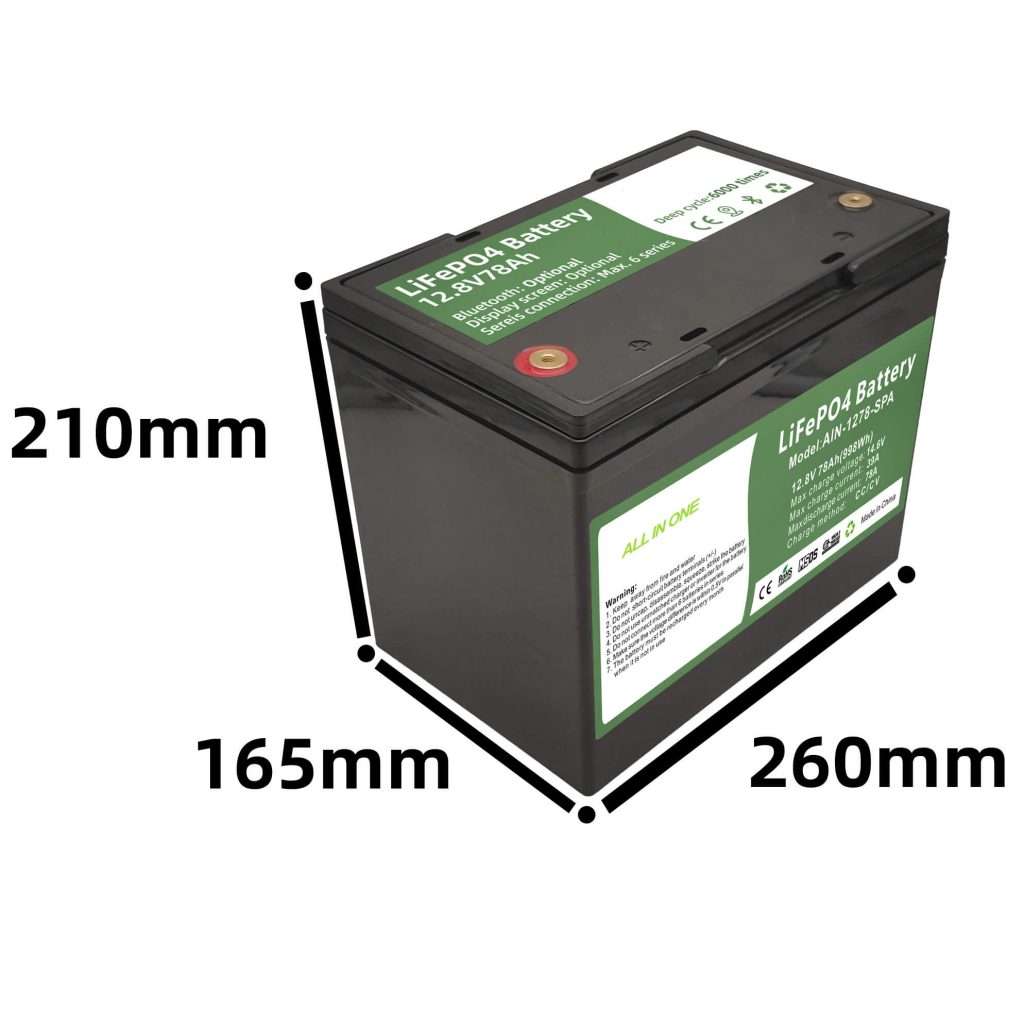 AIN-12150-2P4B | 12.8V | 150Ah | 75A | 150A | 530*208*215 | 17.0 | Plastic Black |